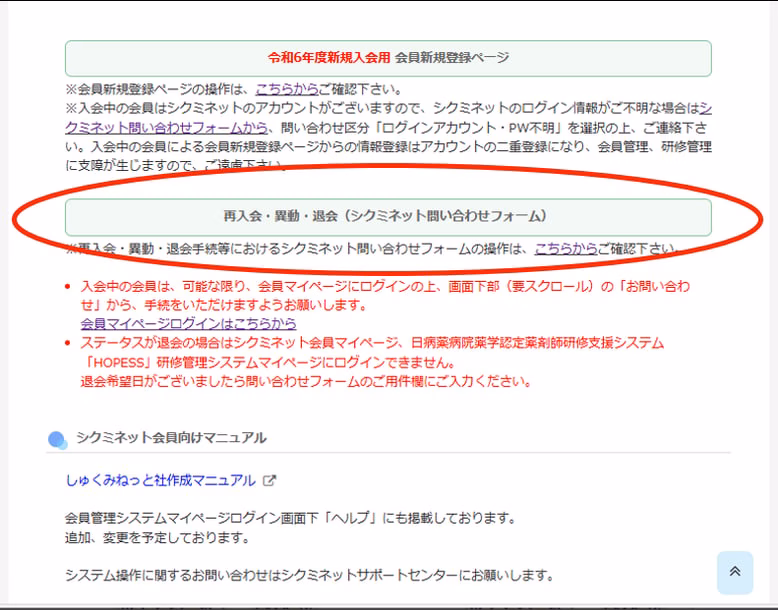 2024年4月1日より、神奈川県病院薬剤師会正会員および個人賛助会員(日本病院薬剤師会同時加入)の会員管理は、日本病院薬剤師会会員管理システム(シクミネット)を利用することになりました。シクミネットでの届出をお願いいたします。